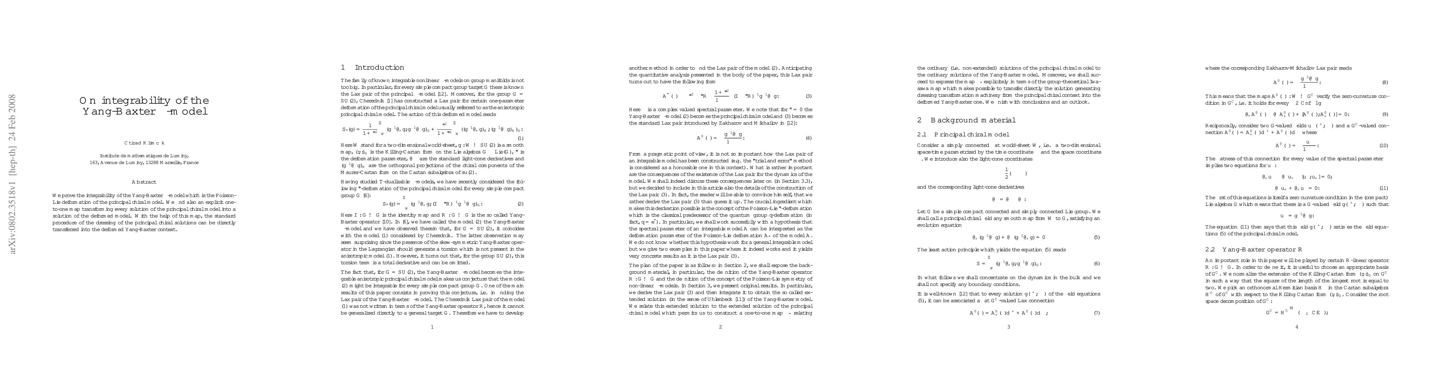 The paper proves the integrability of the Yang-Baxter $\sigma$-model, a Poisson-Lie deformation of the principal chiral model, and establishes a one-to-one transformation mapping solutions between the two models, enabling the transfer of principal chiral dressing procedures into the Yang-Baxter context.