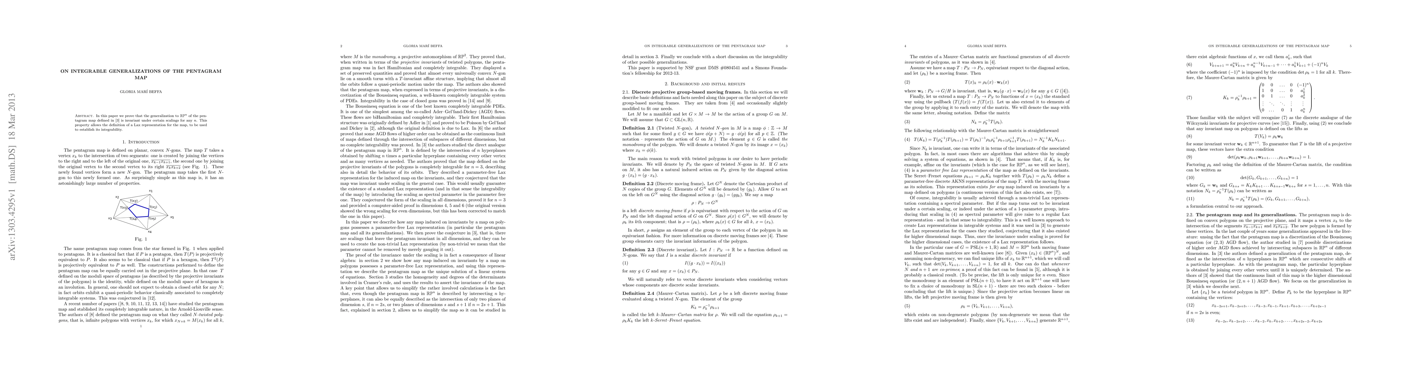 The pentagram map on RP^n is invariant under certain scalings, allowing its definition as a Lax representation, which establishes integrability.