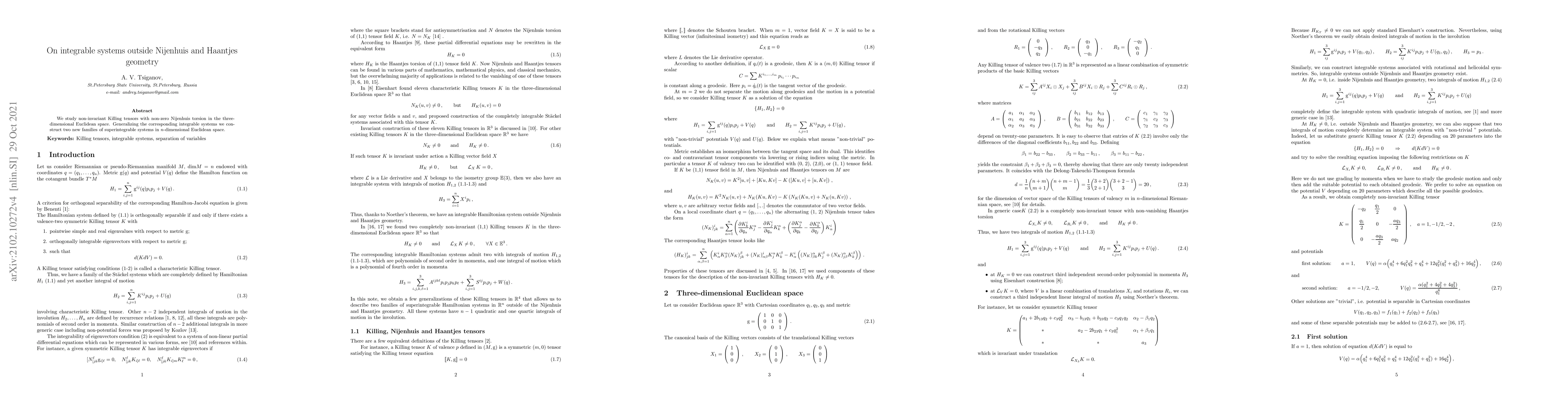 We study non-invariant Killing tensors with non-zero Nijenhuis torsion in the three-dimensional Euclidean space. Generalizing the corresponding integrable systems we construct two new families of superintegrable systems in $n$-dimensional Euclidean space.