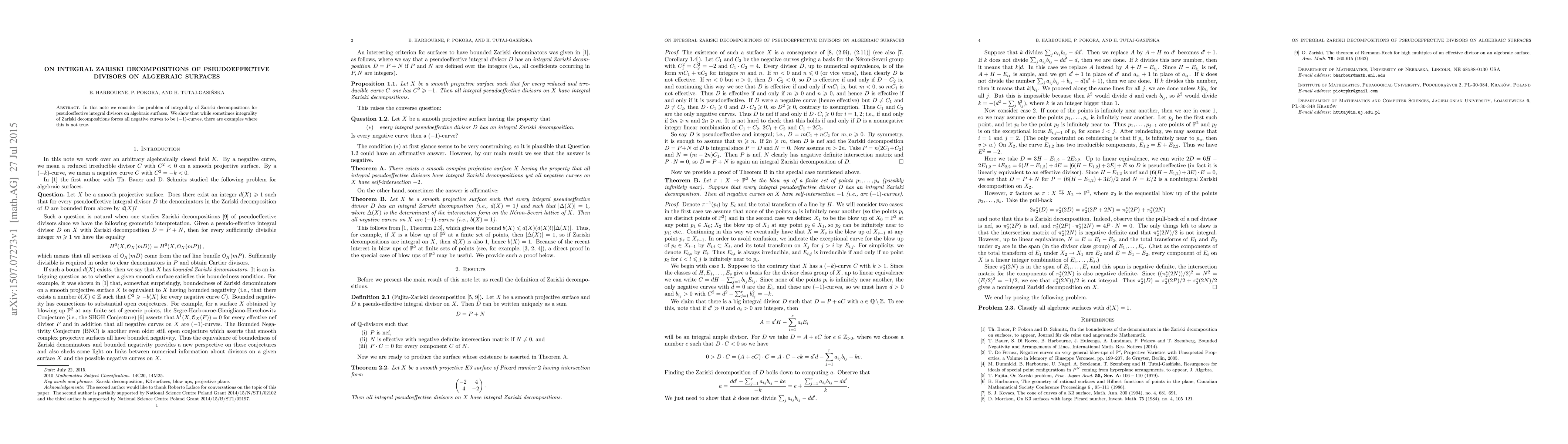 Summary: This paper investigates the integrality of Zariski decompositions for pseudoeffective integral divisors on algebraic surfaces, demonstrating that while integral decompositions sometimes necessitate all negative curves to be $(-1)$-curves, counterexamples exist where this condition does not hold.