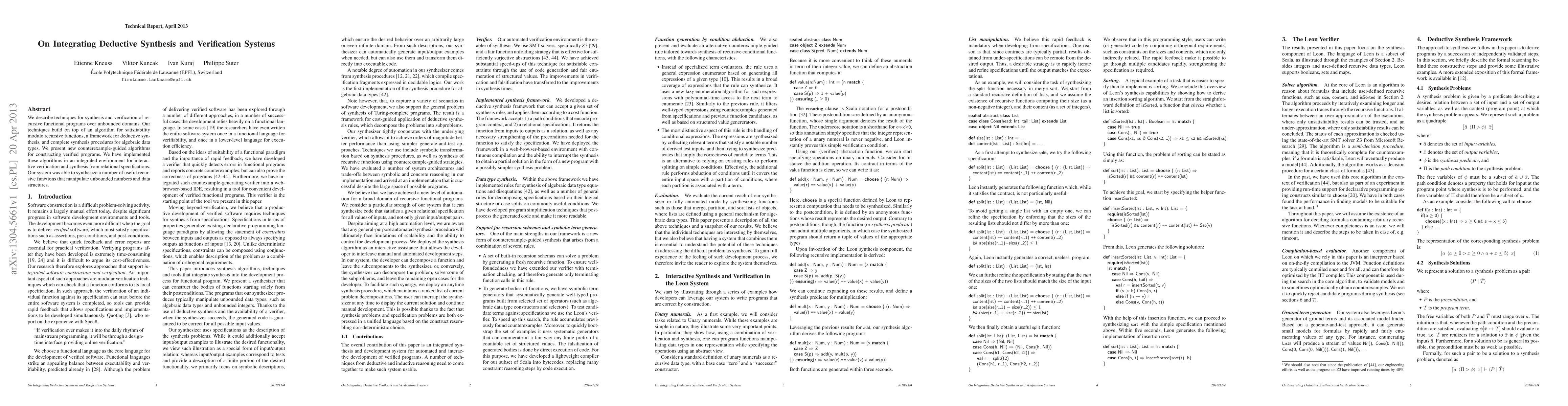 This paper presents techniques for synthesizing and verifying recursive functional programs using deductive synthesis and satisfiability modulo recursive functions, implemented in an interactive system that successfully generates verified programs for manipulating unbounded data.