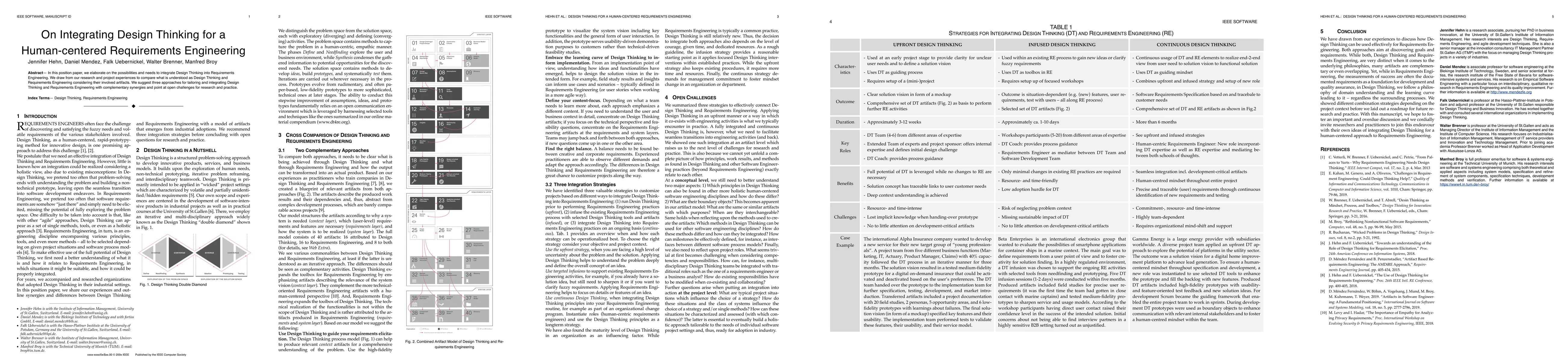 This paper explores the integration of Design Thinking into Requirements Engineering to enhance human-centered design. It proposes three tailored approaches for combining these methodologies and highlights open challenges for future research and practical application.