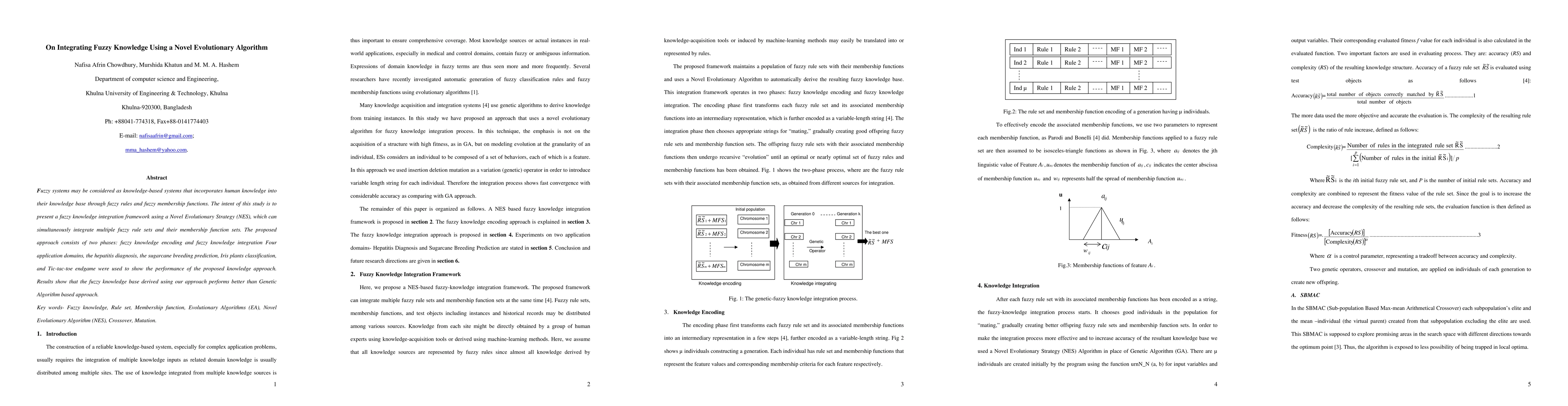 Fuzzy systems may be considered as knowledge-based systems that incorporates human knowledge into their knowledge base through fuzzy rules and fuzzy membership functions. The intent of this study is to present a fuzzy knowledge integration framework using a Novel Evolutionary Strategy (NES), which can simultaneously integrate multiple fuzzy rule sets and their membership function sets. The proposed approach consists of two phases: fuzzy knowledge encoding and fuzzy knowledge integration. Four application domains, the hepatitis diagnosis, the sugarcane breeding prediction, Iris plants classification, and Tic-tac-toe endgame were used to show the performance ofthe proposed knowledge approach. Results show that the fuzzy knowledge base derived using our approach performs better than Genetic Algorithm based approach.