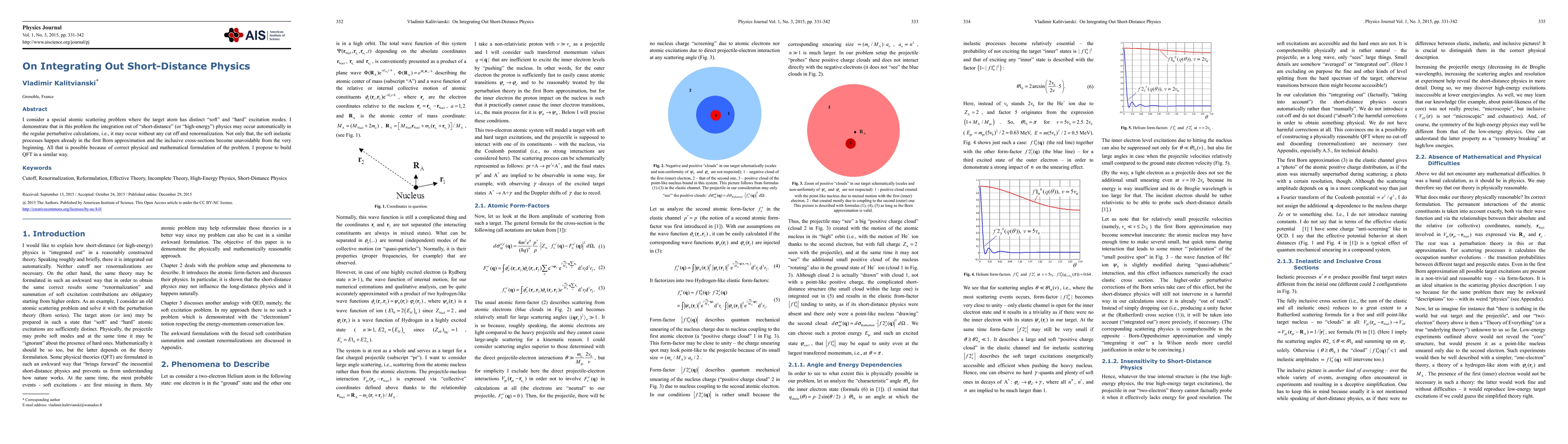 I consider a special atomic scattering problem where the target atom has distinct "soft" and "hard" excitation modes. I demonstrate that in this problem the integration out of "short-distance" (or "high-energy") physics may occur automatically in the regular perturbative calculations, i.e., it may occur without any cut off and renormalization. Not only that, the soft inelastic processes happen already in the first Born approximation and the inclusive cross-sections become unavoidable from the very beginning. All that is possible because of correct physical and mathematical formulation of the problem. I propose to build QFT in a similar way.
