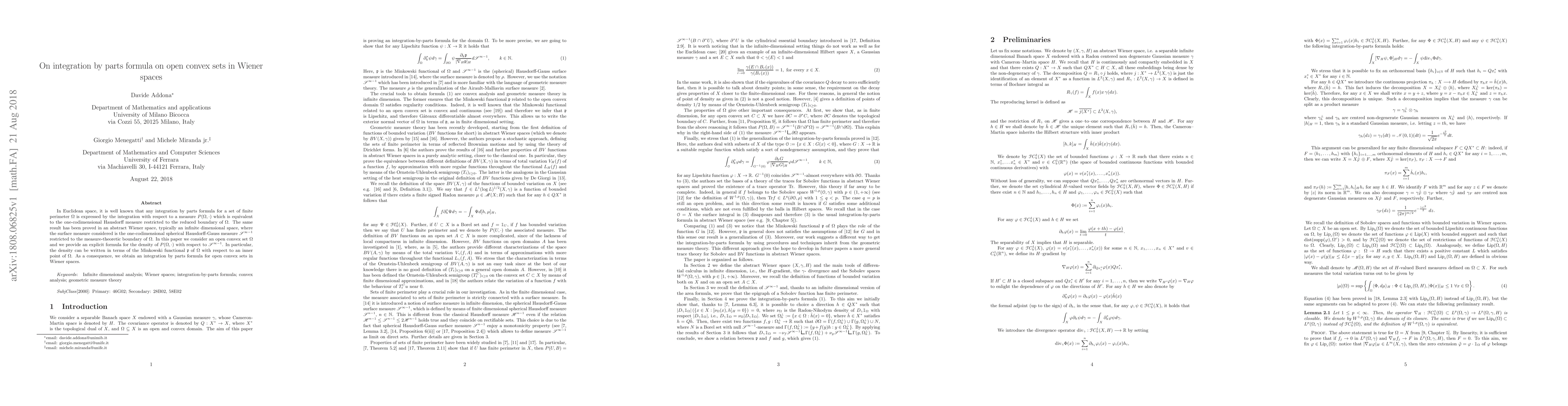 This paper derives an explicit formula for the density of the integration measure $P(\Omega,\cdot)$ with respect to the spherical Hausdorff-Gauss measure $\mathscr S^{\infty-1}$ in open convex sets of abstract Wiener spaces, expressed via the Minkowski functional of $\Omega$. Consequently, it establishes an integration by parts formula for such sets.