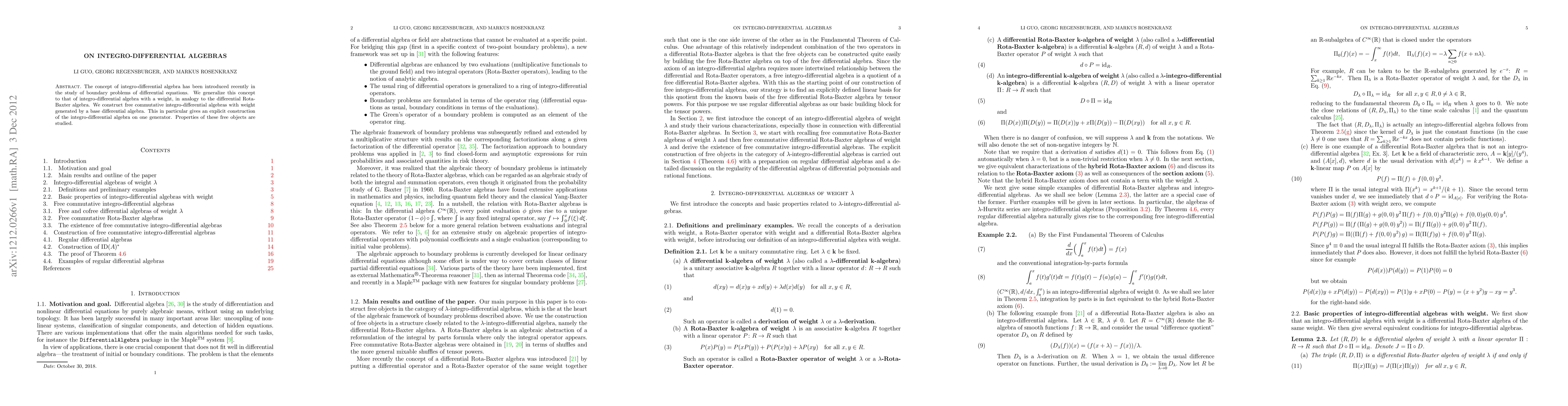 This paper introduces and generalizes integro-differential algebras with weights, analogous to differential Rota-Baxter algebras, and constructs free commutative integro-differential algebras generated by a base differential algebra, providing an explicit construction on one generator and studying their properties.