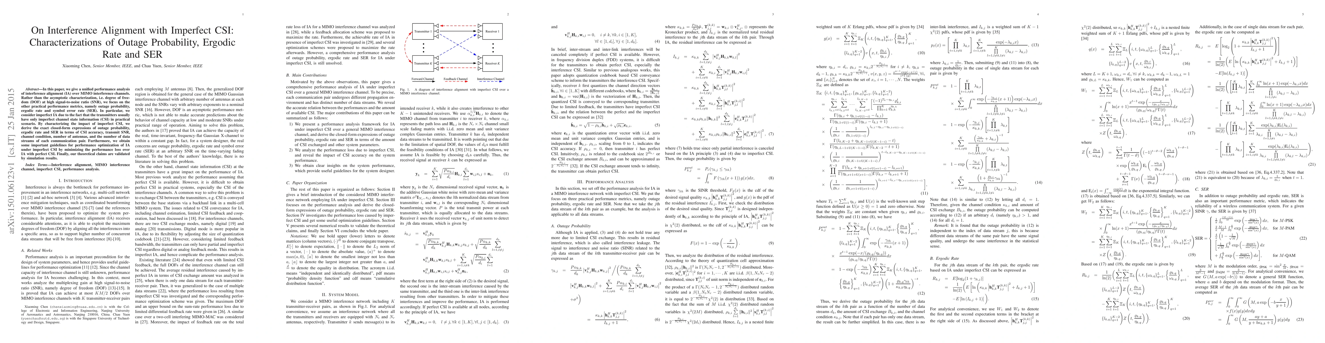 This paper analyzes interference alignment (IA) performance over MIMO channels under imperfect channel state information (CSI), focusing on outage probability, ergodic rate, and symbol error rate (SER). It derives exact closed-form expressions for these metrics and provides guidelines for optimizing IA performance under practical CSI inaccuracies.