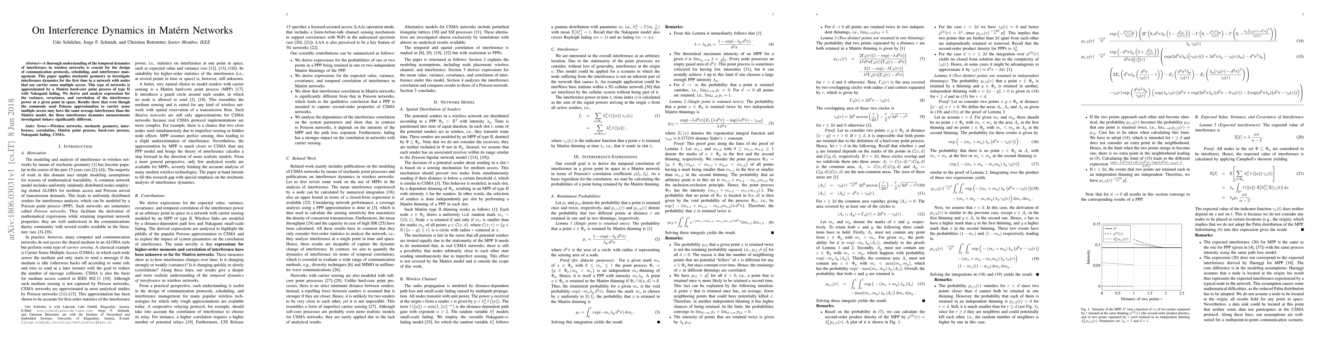 This paper uses stochastic geometry to analyze interference dynamics in Matérn networks employing carrier sense multiple access, revealing significant differences in variance, covariance, and correlation of interference compared to Poisson approximations, despite similar average interference.