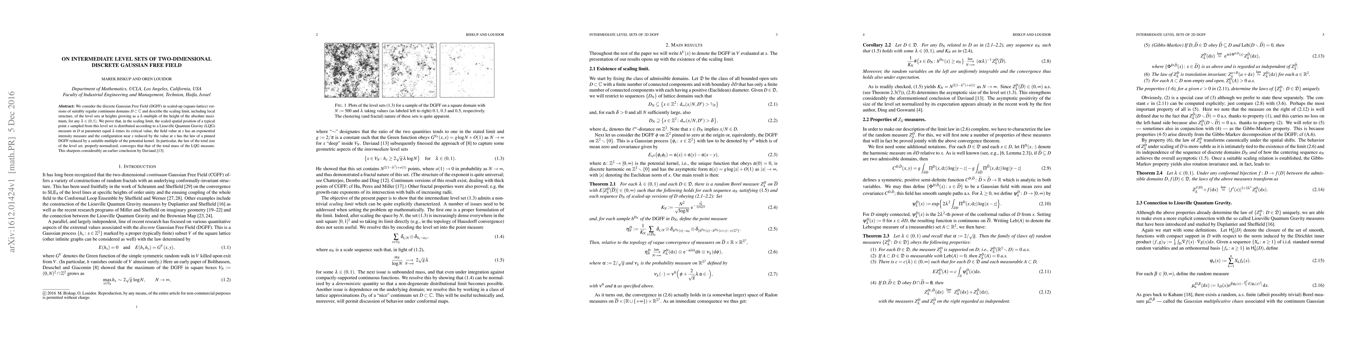 This paper studies the intermediate level sets of two-dimensional discrete Gaussian Free Fields (DGFF) and their scaling limits. It shows that the scaled positions of typical points in these level sets follow a Liouville Quantum Gravity (LQG) measure, while the field values exhibit exponential intensity, and the configurations near these points resemble pinned DGFF.