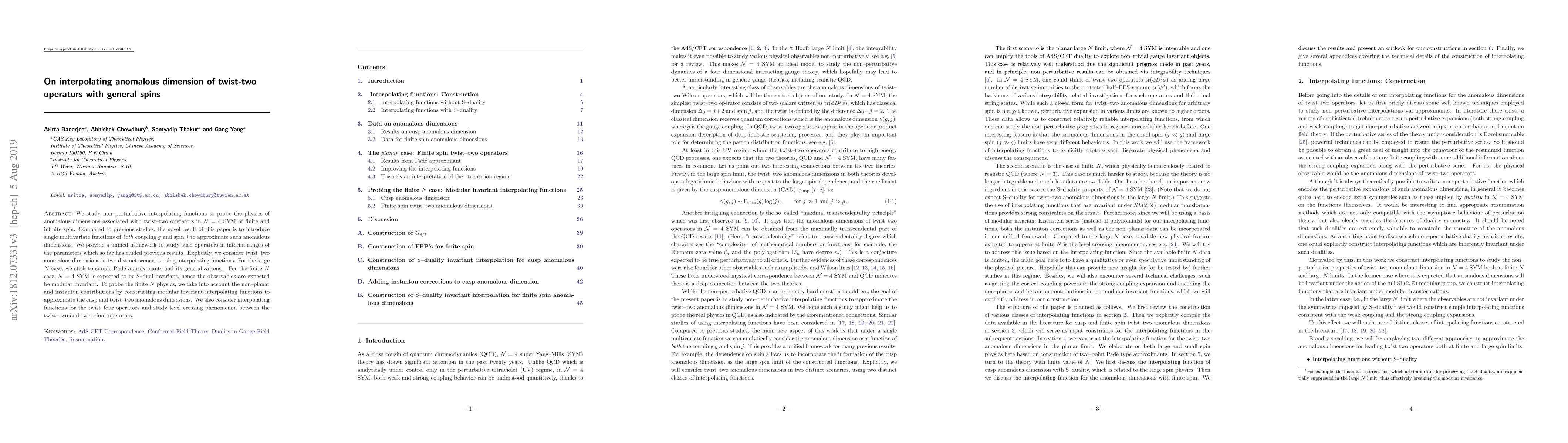 We study non-perturbative interpolating functions to probe the physics of anomalous dimensions associated with twist-two operators in ${\cal N}=4$ SYM of finite and infinite spin. Compared to previous studies, the novel result of this paper is to introduce single multivariate functions of both coupling $g$ and spin $j$ to approximate such anomalous dimensions. We provide a unified framework to study such operators in interim ranges of the parameters which so far has eluded previous results. Explicitly, we consider twist-two anomalous dimensions in two distinct scenarios using interpolating functions. For the large $N$ case, we stick to simple Pad\'{e} approximants and its generalizations . For the finite $N$ case, ${\cal N}=4$ SYM is expected to be S-dual invariant, hence the observables are expected be modular invariant. To probe the finite $N$ physics, we take into account the non-planar and instanton contributions by constructing modular invariant interpolating functions to approximate the cusp and twist-two anomalous dimensions. We also consider interpolating functions for the twist-four operators and study level crossing phenomenon between the twist-two and twist-four operators.