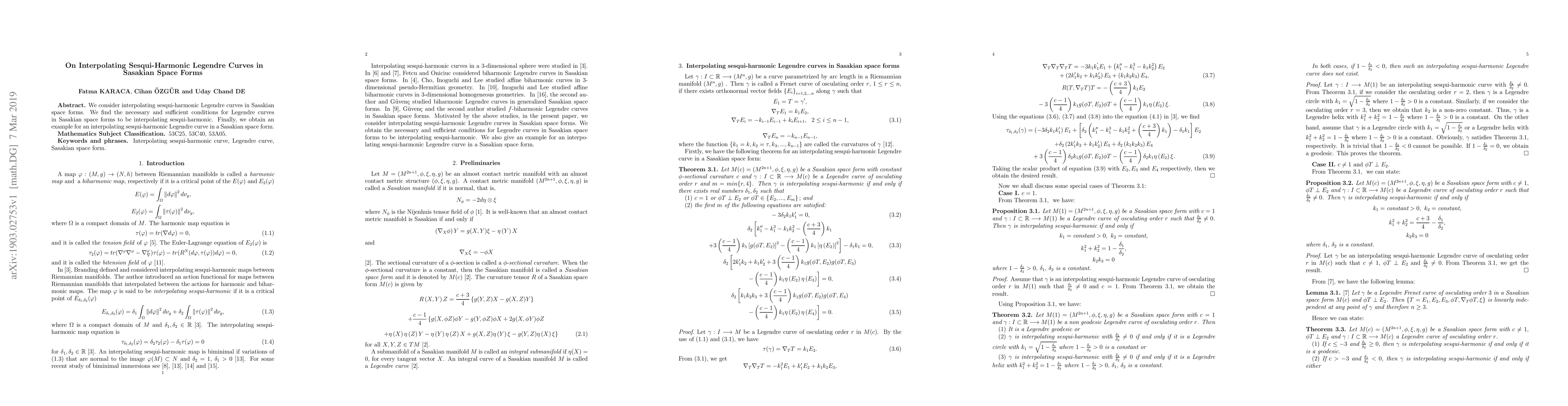 We consider interpolating sesqui-harmonic Legendre curves in Sasakian space forms. We find the necessary and sufficient conditions for Legendre curves in Sasakian space forms to be interpolating sesqui-harmonic. Finally, we obtain an example for an interpolating sesqui-harmonic Legendre curve in a Sasakian space form.