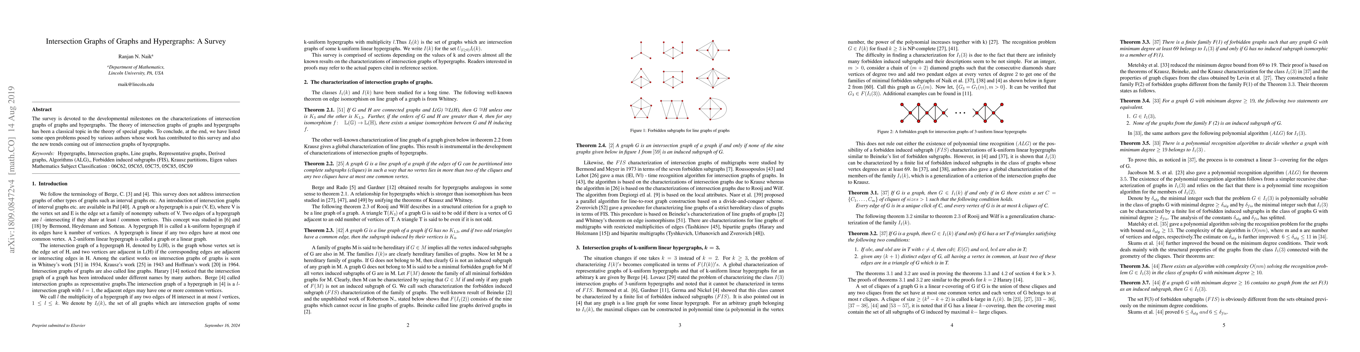 This survey outlines key developments in the theory of intersection graphs of hypergraphs, focusing on their characterizations and the role of forbidden induced subgraphs. It concludes by presenting open problems and emerging trends in the field. Keywords include hypergraphs, intersection graphs, algorithms, and eigenvalues.