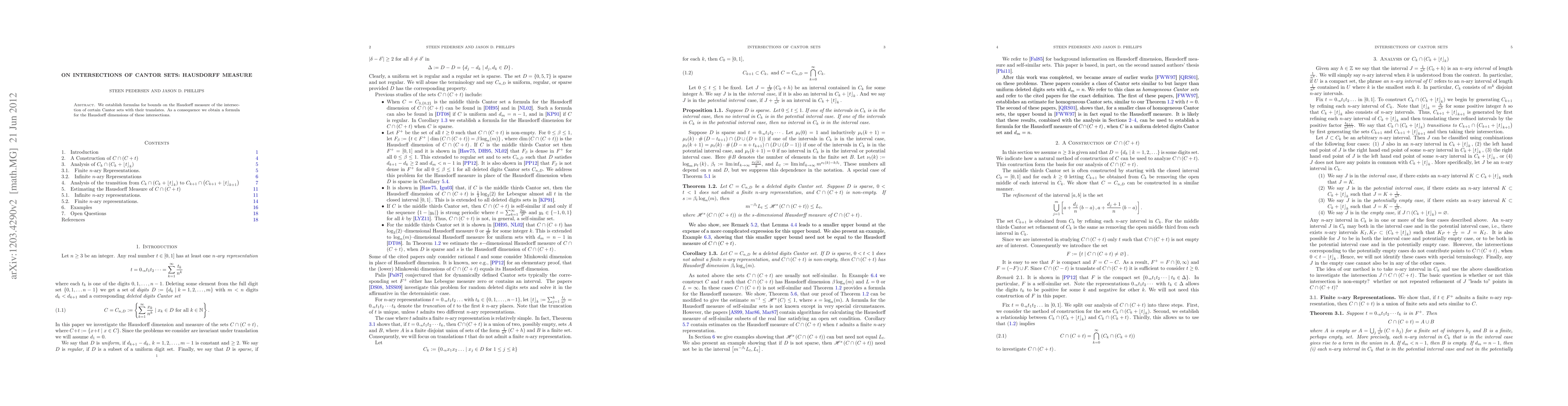 The paper establishes formulas for bounds on the Hausdorff measure of intersections of certain Cantor sets with their translates, deriving a formula for the Hausdorff dimensions of these intersections.