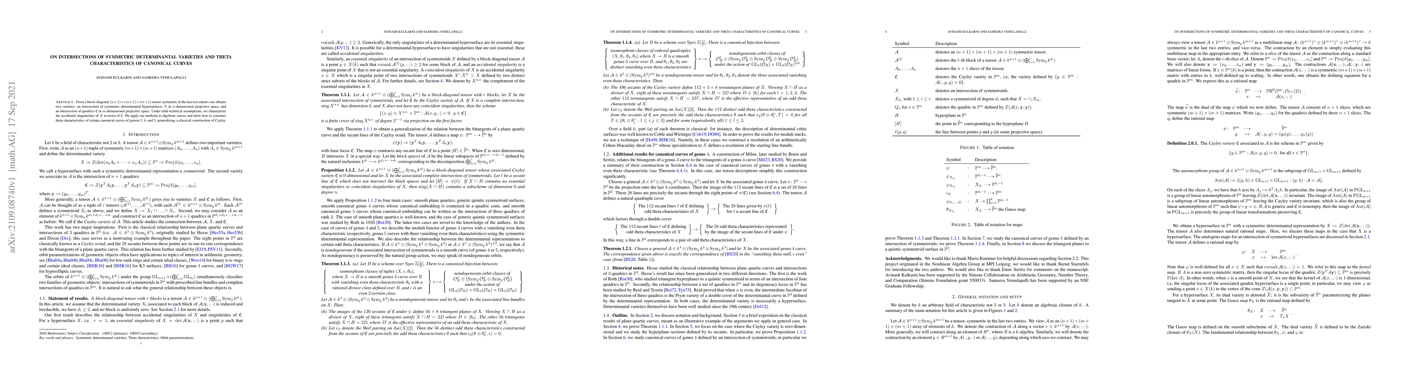 From a block-diagonal $(n+1) \times (m+1) \times (m+1)$ tensor symmetric in the last two entries one obtains two varieties: an intersection of symmetric determinantal hypersurfaces $X$ in $n$-dimensional projective space, and an intersection of quadrics $\mathfrak{C}$ in $m$-dimensional projective space. Under mild technical assumptions, we characterize the accidental singularities of $X$ in terms of $\mathfrak{C}$. We apply our methods to algebraic curves and show how to construct theta characteristics of certain canonical curves of genera 3, 4, and 5, generalizing a classical construction of Cayley.