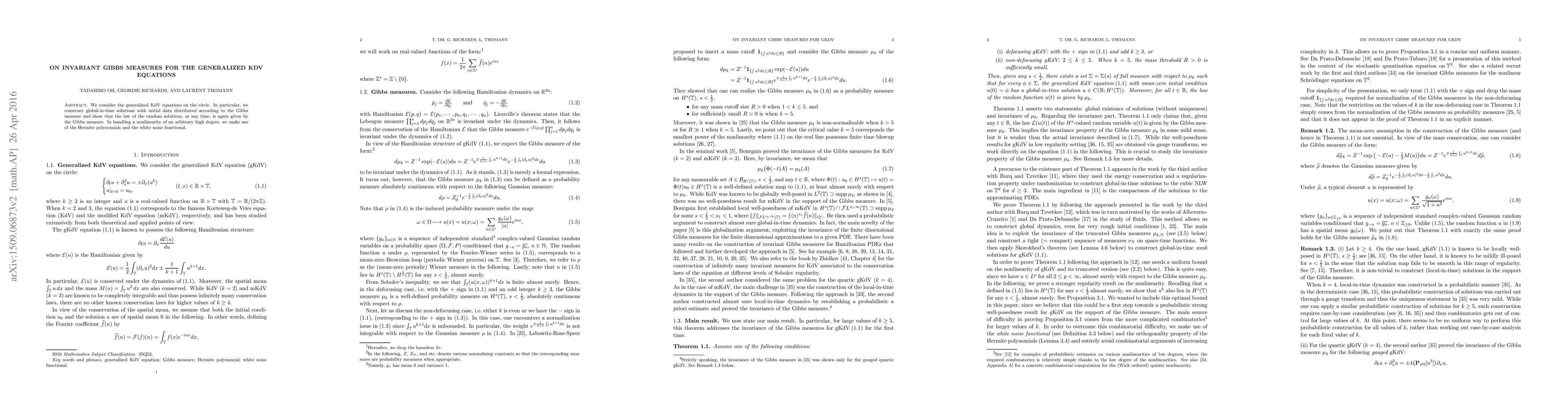 This paper constructs global-in-time solutions to the generalized KdV equations with initial data following a Gibbs measure, showing that the law of the random solutions remains the same over time.