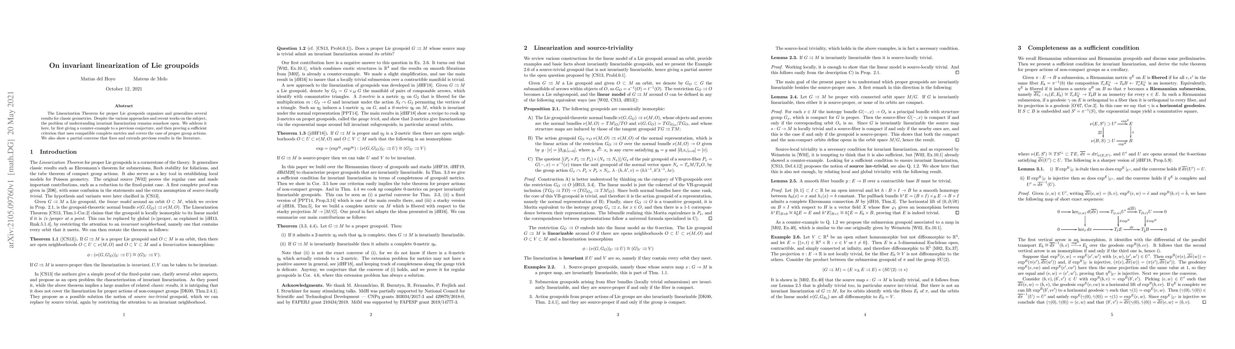 The paper disproves a prior conjecture on invariant linearization of Lie groupoids and provides a new sufficient criterion using compatible complete metrics, addressing the open problem in this area. It also offers a partial converse that extends existing results.