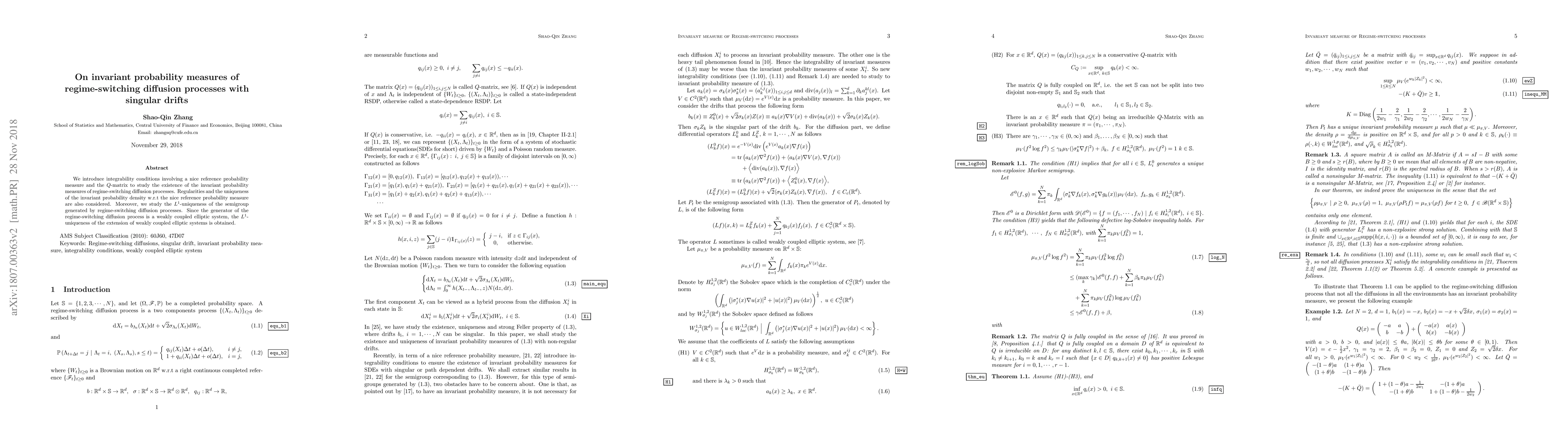 For regime-switching diffusions processes with singular drifts, we introduce integrability conditions involving a nice reference probability measure and the $Q$-matrix of the jump part to study the existence of the invariant probability measures. Consequently, the generator of the regime-switching diffusions process has an extension in the $L^1$-space w.r.t the invariant probability measure to be a generator of $C_0$-semigroup. Moreover, we prove the uniqueness of the extension. Regularities and the uniqueness of the invariant probability density w.r.t the nice reference probability measure are also considered.