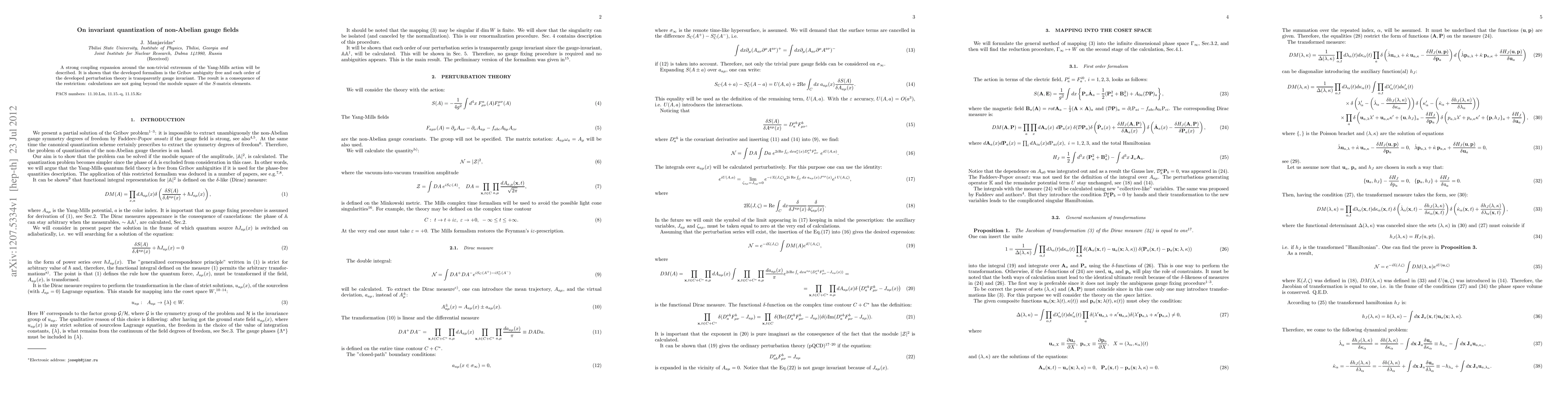 A strong coupling expansion around the non-trivial extremum of the Yang-Mills action will be described. It is shown that the developed formalism is the Gribov ambiguity free and each order of the developed perturbation theory is transparently gauge invariant. The result is a consequence of the restriction: calculations are not going beyond the module square of the $S$-matrix elements.