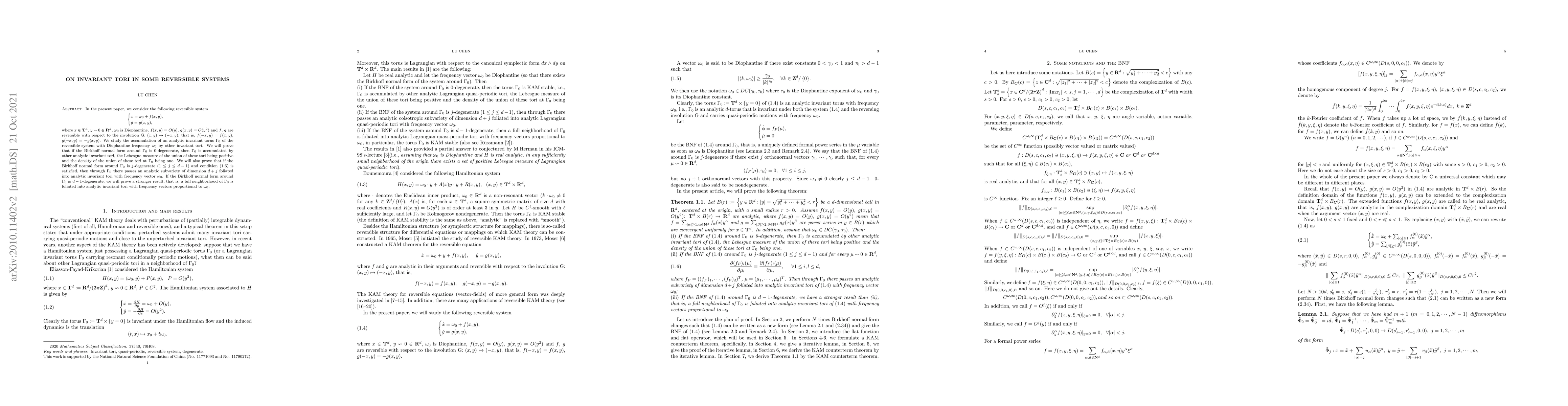 Researchers study the accumulation of invariant tori in a reversible system with Diophantine frequency, finding that certain tori are accumulated under others, and that some systems have subvarieties foliated into multiple tori with specific frequencies.
