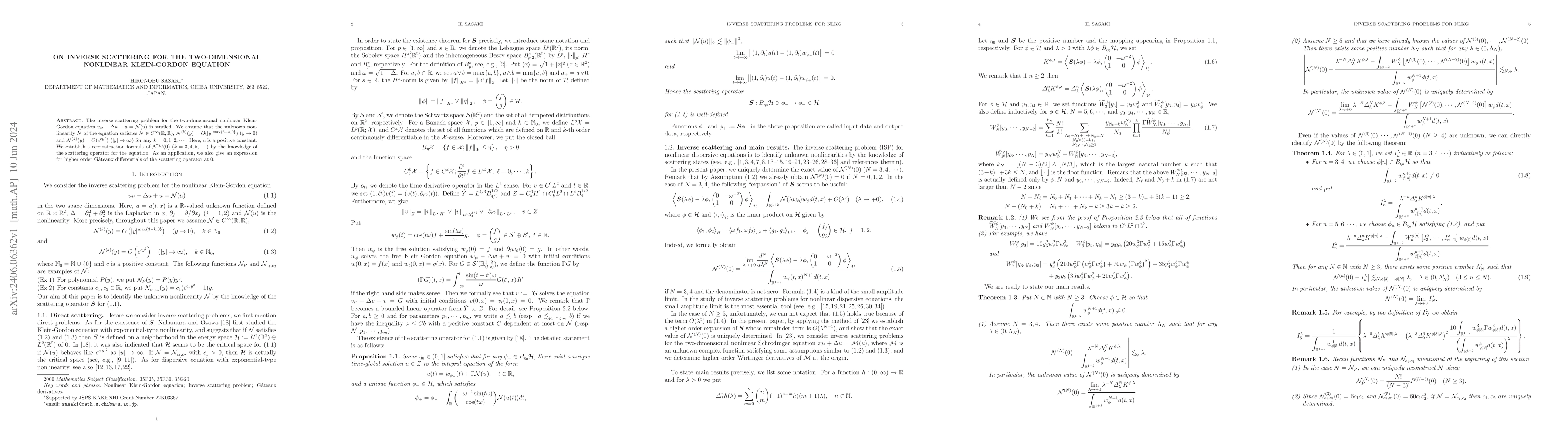 This paper studies the inverse scattering problem for the two-dimensional nonlinear Klein-Gordon equation, deriving a reconstruction formula for higher-order derivatives of the unknown nonlinearity using scattering data. It also provides an expression for higher-order Gâteaux differentials of the scattering operator.