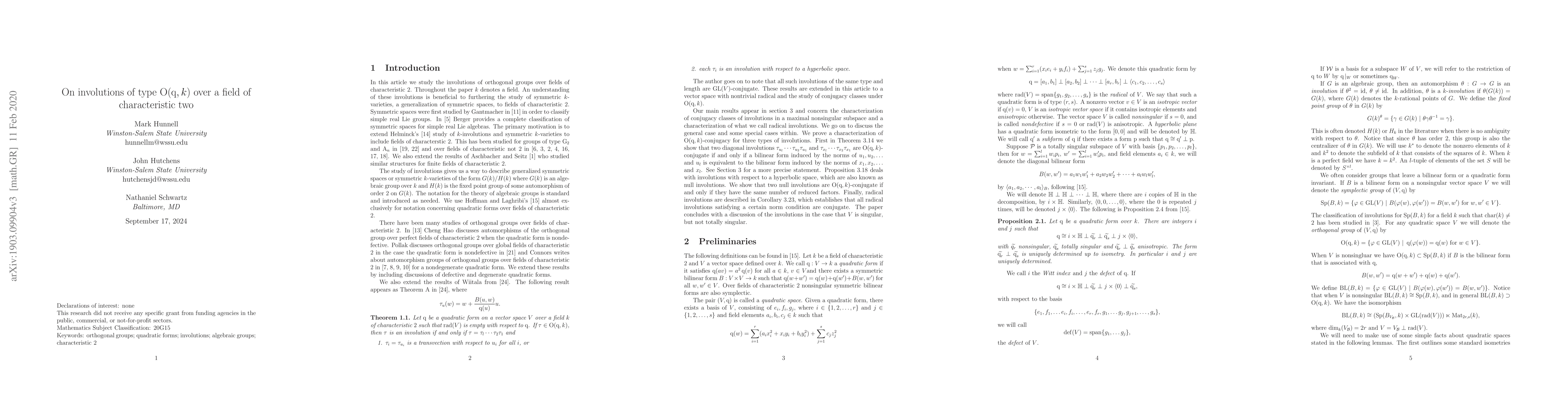 In this article we study the involutions of $\mathrm{O}(V,\mathrm{q})$, an orthogonal group for a vector space $V$ with quadratic form $\mathrm{q}$ over a field of characteristic 2. The classification proceeds by discussing conjugacy classes of involutions arising as a product of transvections, involutions with respect to a hyperbolic space, and involutions acting nontrivially in the radical of $V$. We achieve a complete classification of the conjugacy classes of involutions when the quadratic space $(V,\mathrm{q})$ is non-defective, and conclude with a discussion of the defective case.