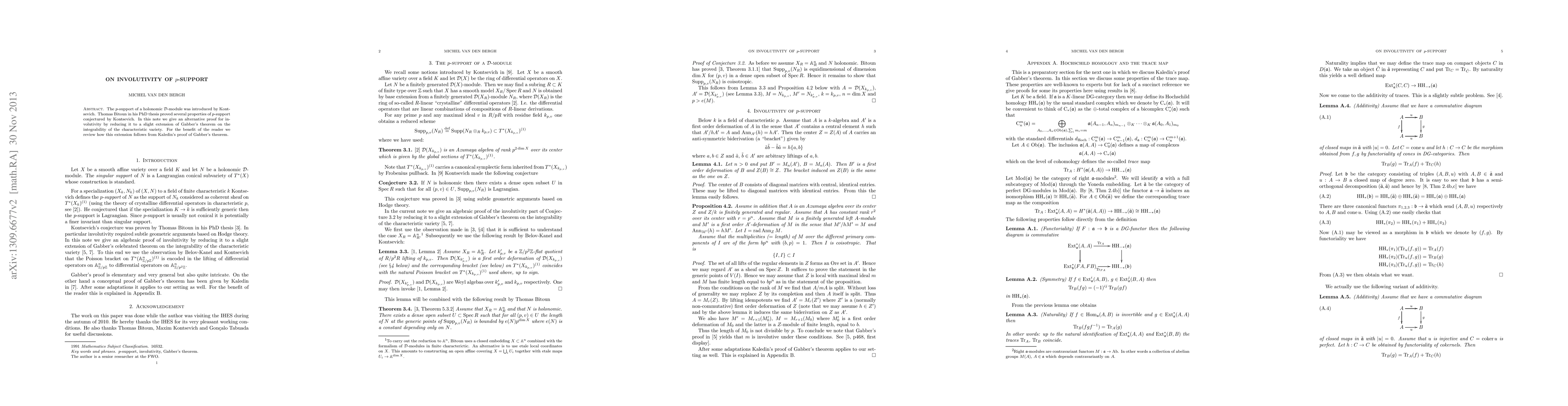 The p-support of a holonomic D-module was introduced by Kontsevich. Thomas Bitoun in his PhD thesis proved several properties of p-support conjectured by Kontsevich. In this note we give an alternative proof for involutivity by reducing it to a slight extension of Gabber's theorem on the integrability of the characteristic variety. For the benefit of the reader we review how this extension follows from Kaledin's proof of Gabber's theorem.