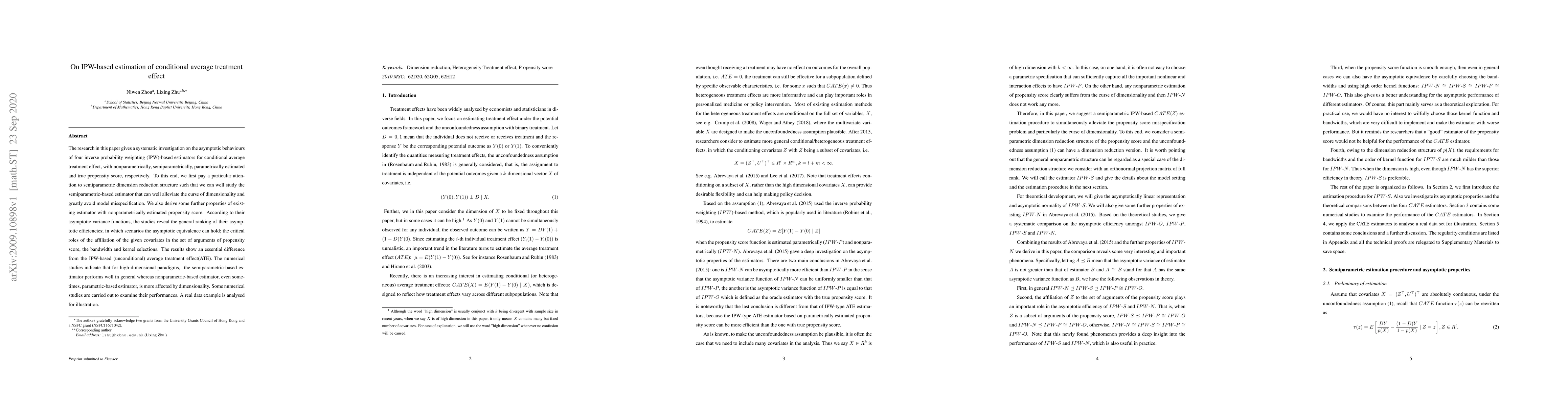 The paper systematically investigates the asymptotic behaviors of four inverse probability weighting (IPW)-based estimators for conditional average treatment effect (CATE) using nonparametric, semiparametric, and parametric propensity score estimations.