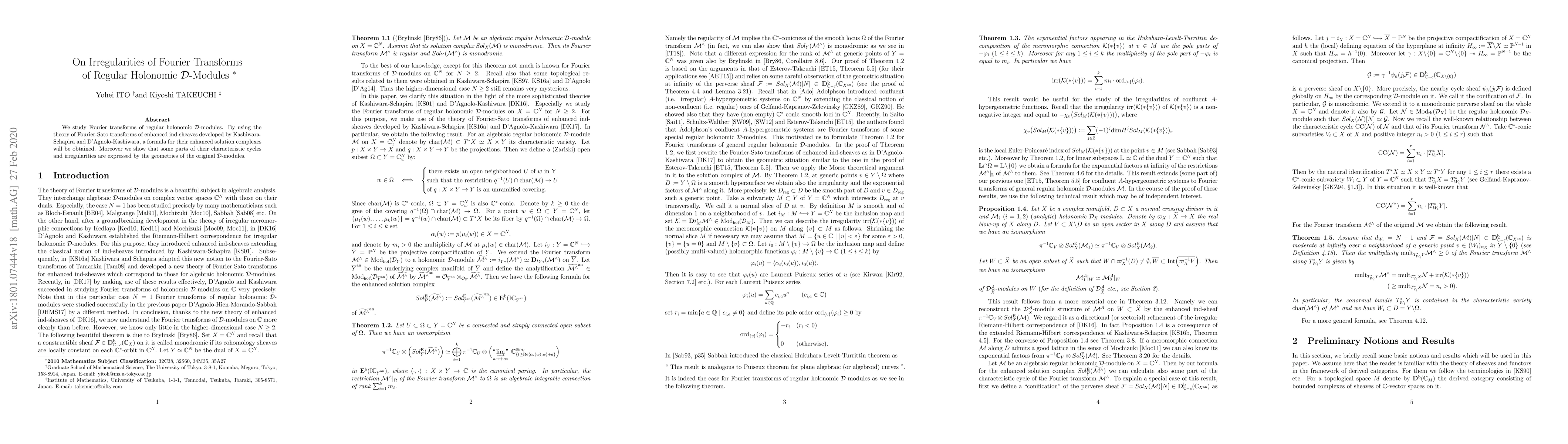 This paper develops a formula for the Fourier transforms of regular holonomic D-modules using advanced theories by Kashiwara-Schapira and D'Agnolo-Kashiwara, and demonstrates how the characteristic cycles and irregularities of these transforms relate to the geometry of the original D-modules.