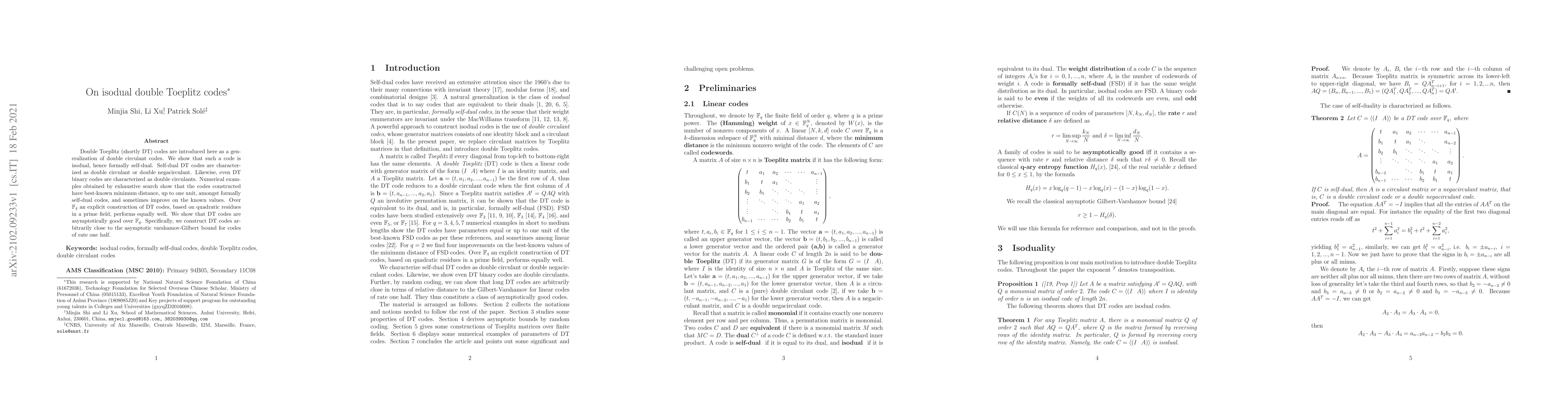 This paper introduces double Toeplitz codes as a generalization of circulant codes and shows they can achieve the best-known minimum distance amongst self-dual codes.