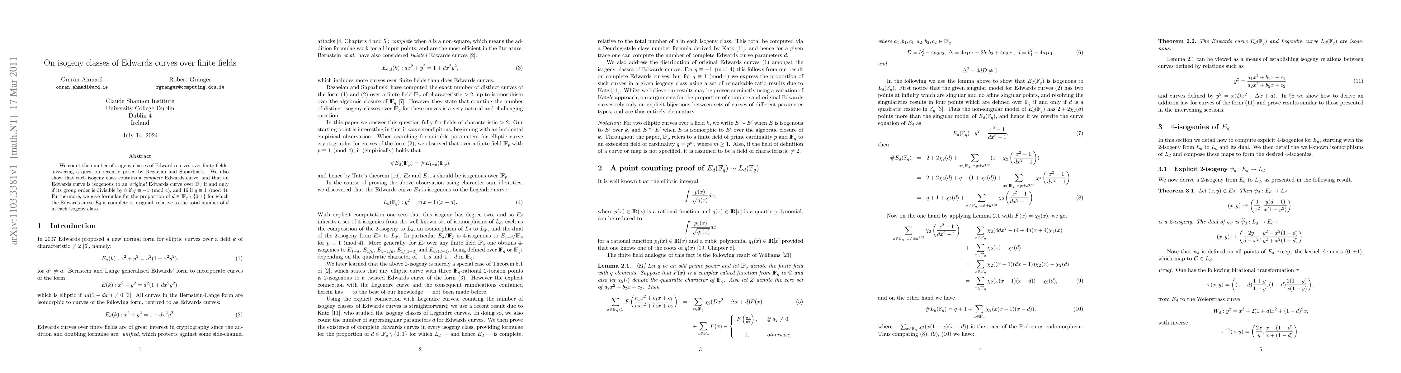 This paper counts the number of isogeny classes of Edwards curves over finite fields and demonstrates that each class contains a complete Edwards curve. It also provides conditions for an Edwards curve to be isogenous to an original curve based on the field's characteristic and gives formulae for the proportion of such curves within each class.