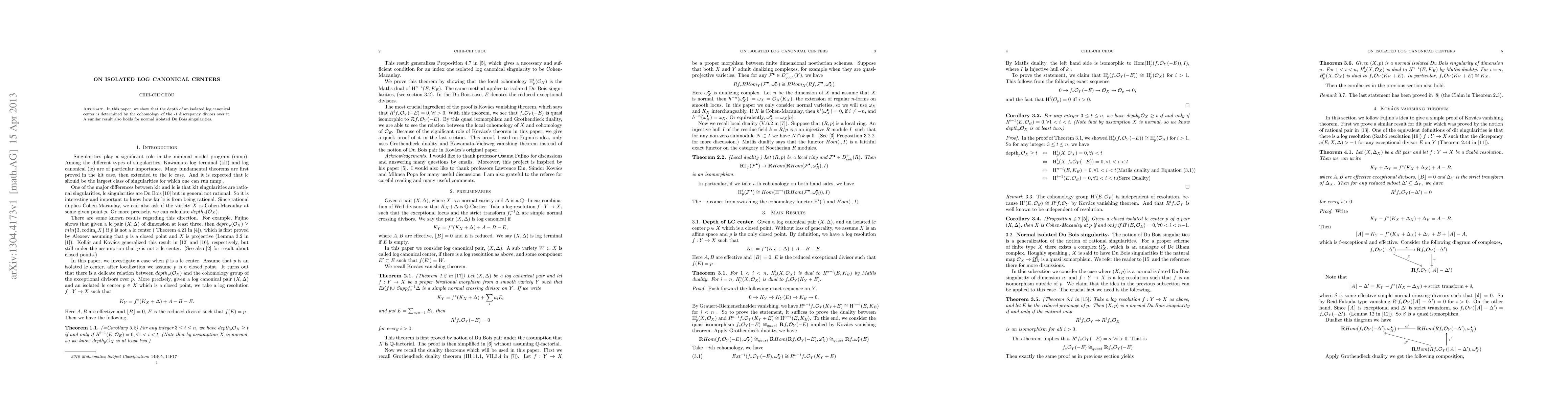 In this paper, we show that the depth of an isolated log canonical center is determined by the cohomology of the -1 discrepancy diviors over it. A similar result also holds for normal isolated Du Bois singularities.