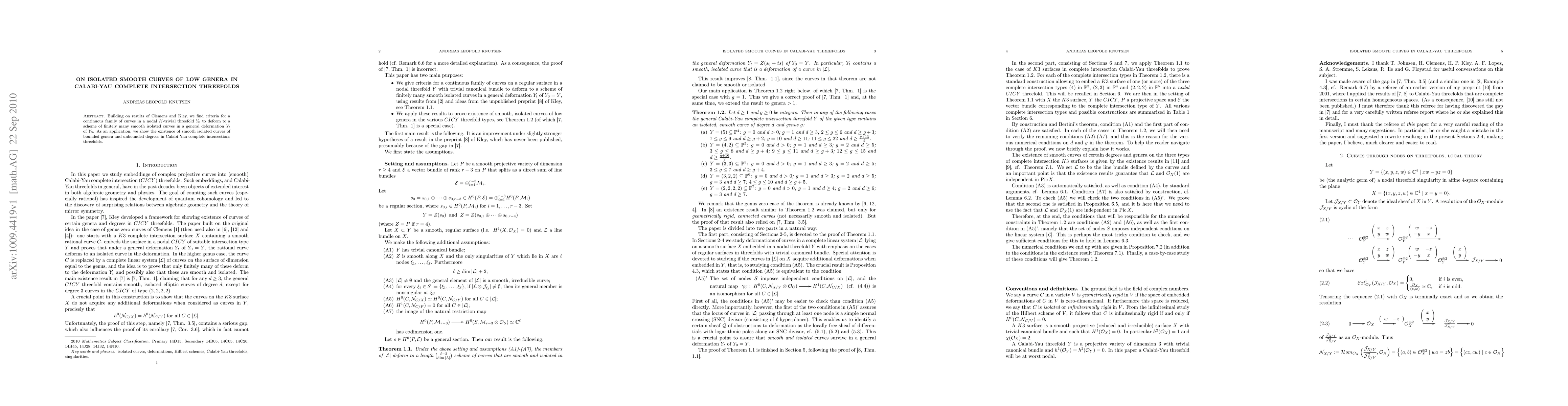 Building on results of Clemens and Kley, we find criteria for a continuous family of curves in a nodal $K$-trivial threefold $Y_0$ to deform to a scheme of finitely many smooth isolated curves in a general deformation $Y_t$ of $Y_0$. As an application, we show the existence of smooth isolated curves of bounded genera and unbounded degrees in Calabi-Yau complete intersections threefolds.