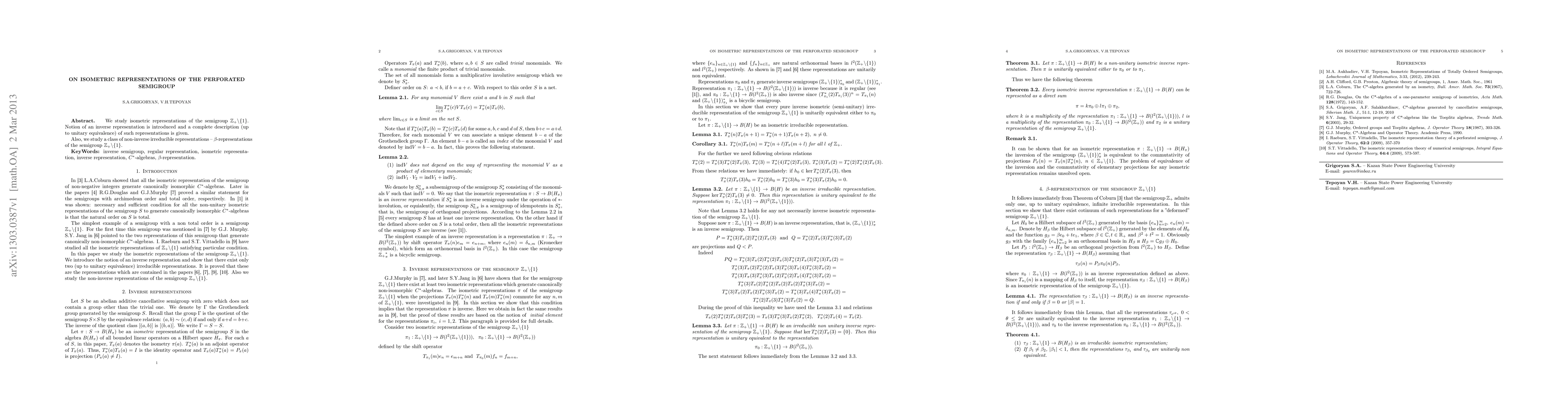 This paper investigates isometric representations of the semigroup $\mathbb{Z}_+\backslash \{1\}$, introducing inverse representations and providing a complete description of them up to unitary equivalence. It also explores a class of non-inverse irreducible representations known as $\beta$-representations.