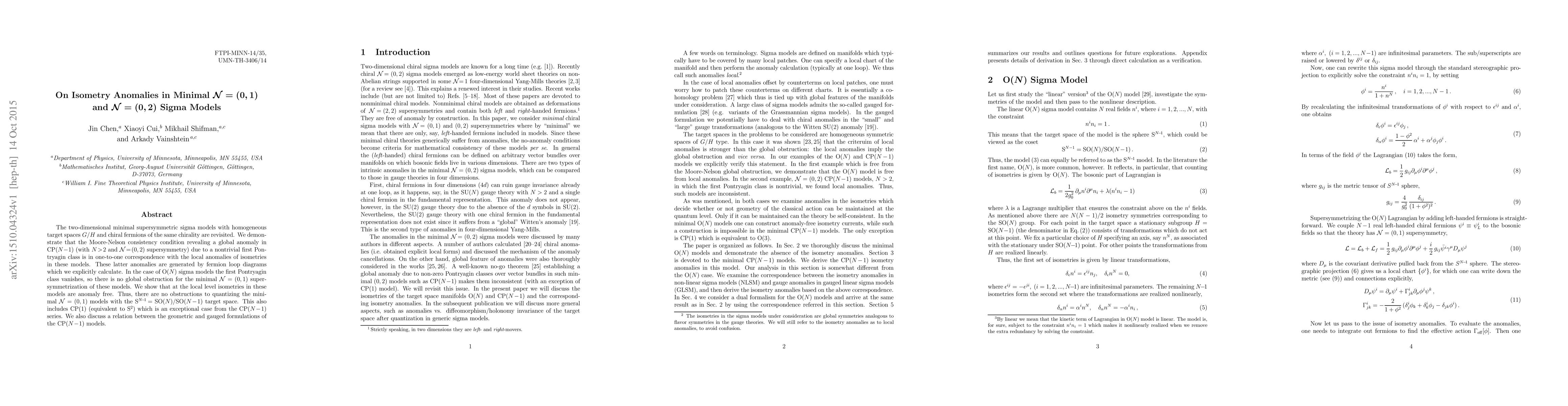 This paper investigates isometry anomalies in two-dimensional minimal supersymmetric sigma models with ${\mathcal N}=(0,1)$ and ${\mathcal N}=(0,2)$ supersymmetry. It finds that global anomalies in CP(N-1) models correspond to local isometry anomalies, revealing no obstructions for quantizing the ${\mathcal N}=(0,1)$ models with $S^{N-1}$ target spaces.