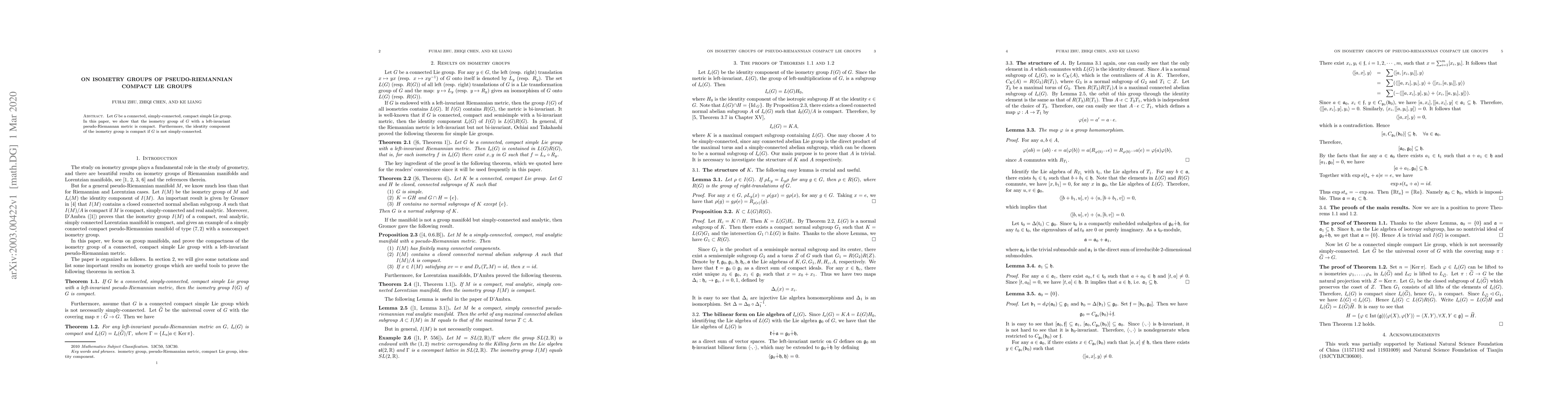 This paper demonstrates that for connected, simply-connected, compact simple Lie groups, the isometry group of a left-invariant pseudo-Riemannian metric is compact. Additionally, it's shown that for non-simply-connected cases, the identity component of the isometry group remains compact.