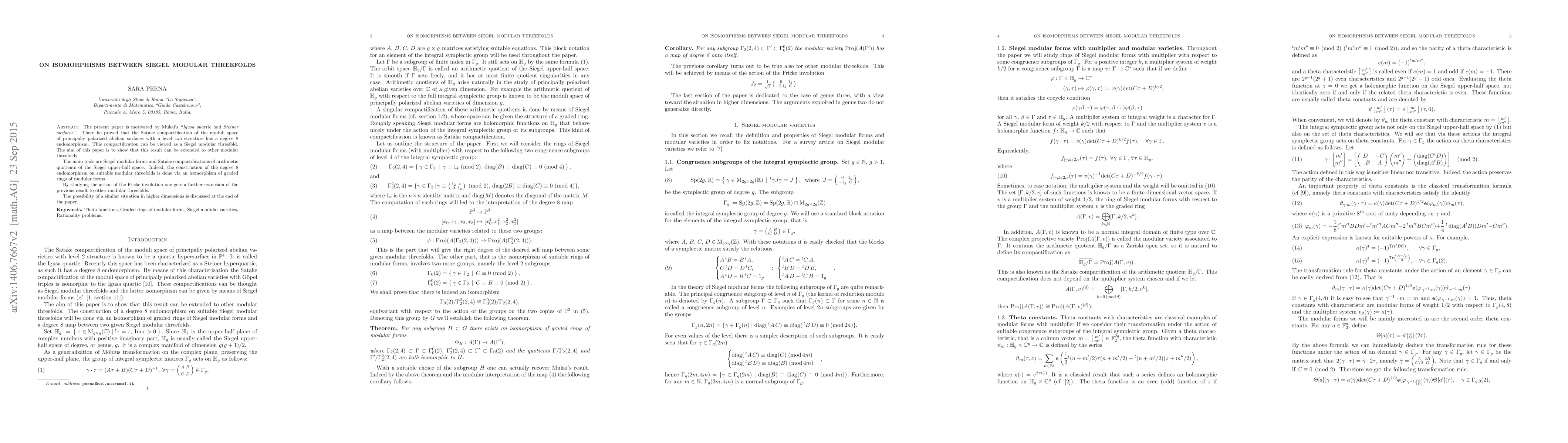 This paper demonstrates an isomorphism between Siegel modular threefolds, extending a previously known degree 8 endomorphism to broader modular threefolds using Siegel modular forms and Satake compactifications, ultimately achieved through graded ring isomorphisms of modular forms. The study also explores the potential for similar phenomena in higher dimensions.