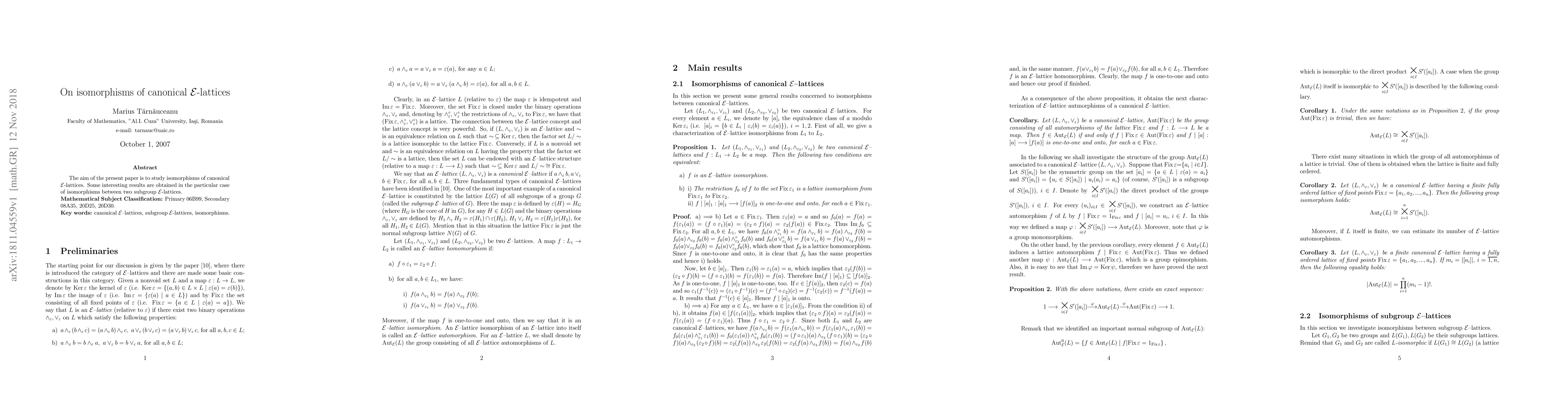 The aim of the present paper is to study isomorphisms of canonical ${\cal E}$-lattices. Some interesting results are obtained in the particular case of isomorphisms between two subgroup ${\cal E}$-lattices.