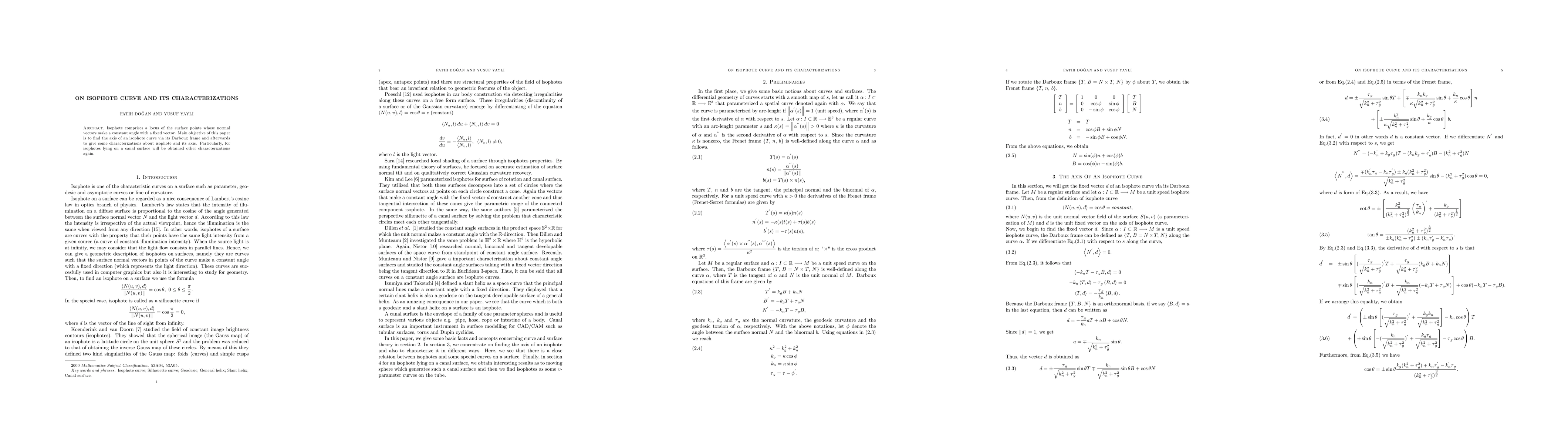 This paper explores isophote curves, which are defined by surface points where normal vectors make a constant angle with a fixed vector. It aims to determine the axis of an isophote curve using its Darboux frame and provides characterizations for isophotes, particularly focusing on those on canal surfaces.