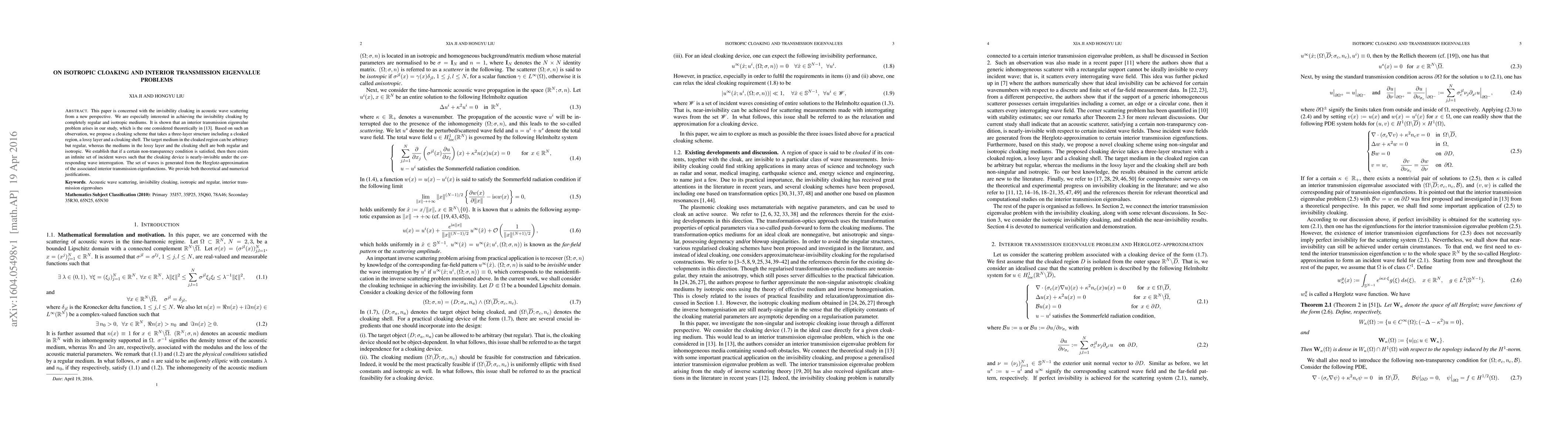 This paper proposes a novel isotropic cloaking scheme for acoustic wave scattering using a three-layer structure, demonstrating near-invisibility through an interior transmission eigenvalue problem and a non-transparency condition. Theoretical and numerical results validate the effectiveness of the proposed cloaking method.