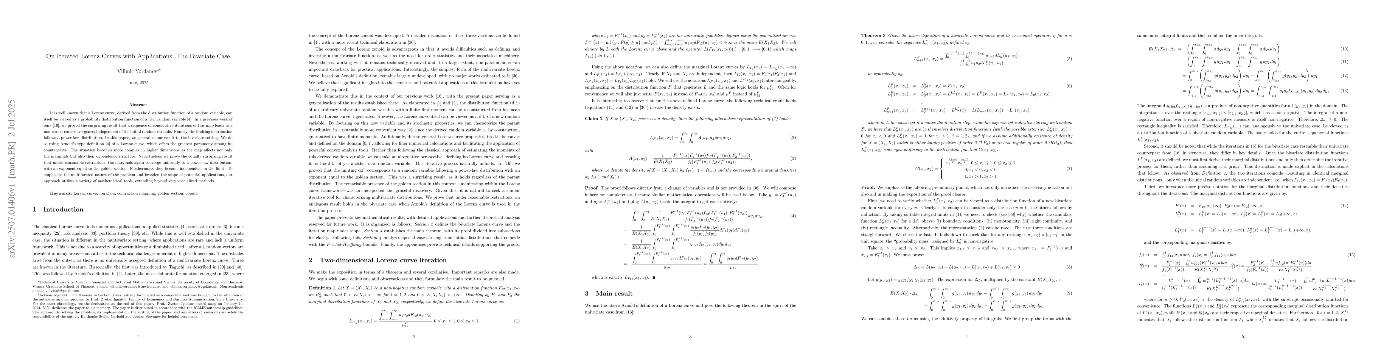 It is well known that a Lorenz curve, derived from the distribution function of a random variable, can itself be viewed as a probability distribution function of a new random variable [2]. In a previous work of ours [3], we proved the surprising result that a sequence of consecutive iterations of this map leads to a non-corner case convergence, independent of the initial random variable. Namely, the limiting distribution follows a power-law distribution. In this paper, we generalize our result to the bivariate setting. We do so using Arnold's type definition [2] of a Lorenz curve, which offers the greatest parsimony among its counterparts. The situation becomes more complex in higher dimensions as the map affects not only the marginals but also their dependence structure. Nevertheless, we prove the equally surprising result that under reasonable restrictions, the marginals again converge uniformly to a power-law distribution, with an exponent equal to the golden section. Furthermore, they become independent in the limit. To emphasize the multifaceted nature of the problem and broaden the scope of potential applications, our approach utilizes a variety of mathematical tools, extending beyond very specialized methods.