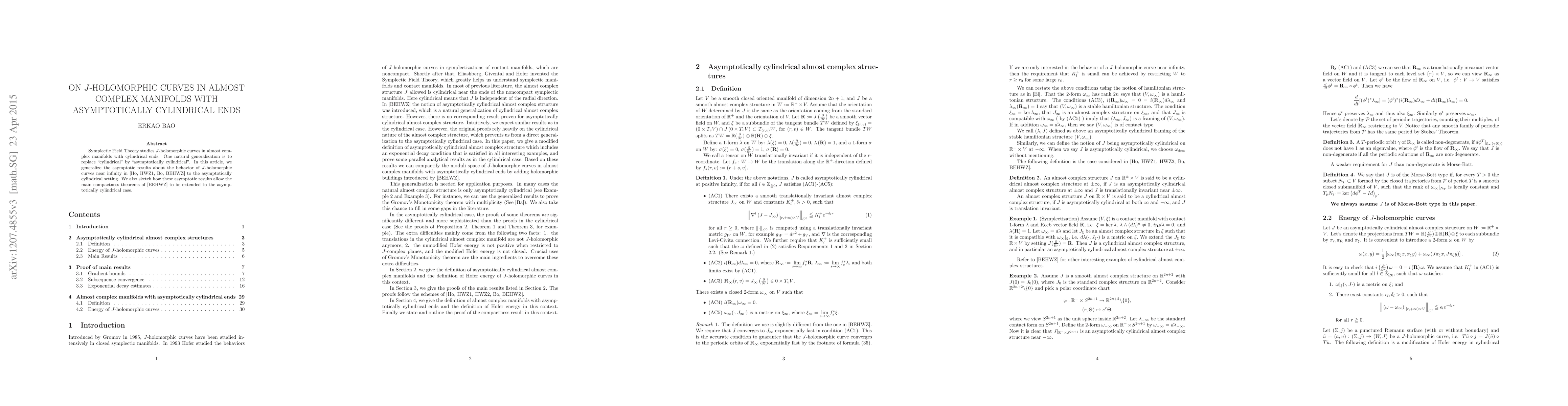 This paper generalizes asymptotic results concerning J-holomorphic curves in almost complex manifolds to those with asymptotically cylindrical ends, extending the main compactness theorems in Symplectic Field Theory to this new setting.