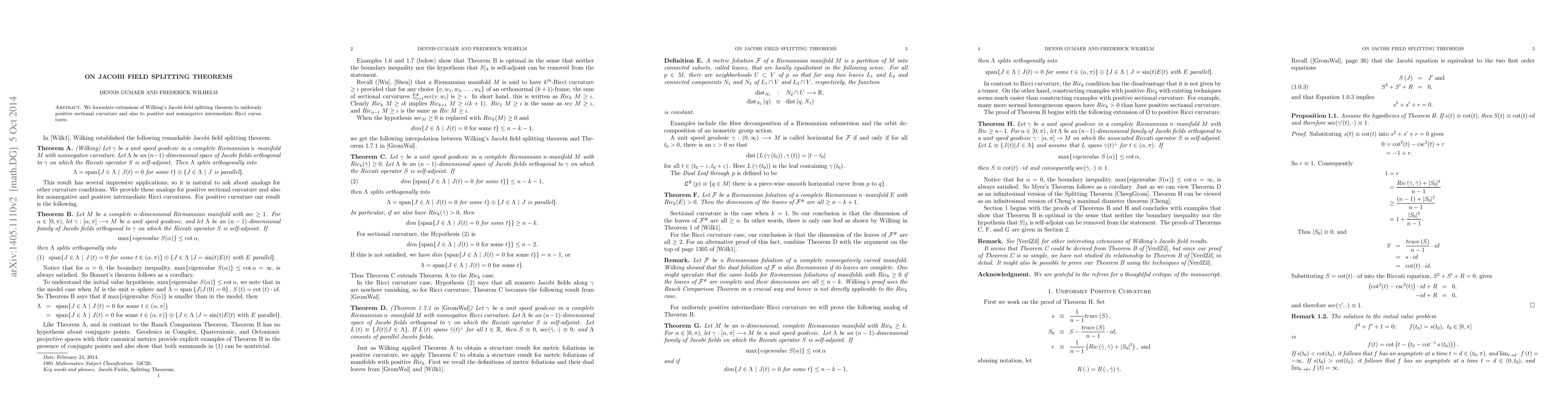 We formulate extensions of Wilking's Jacobi field splitting theorem to uniformly positive sectional curvature and also to positive and nonnegative intermediate Ricci curvatures.