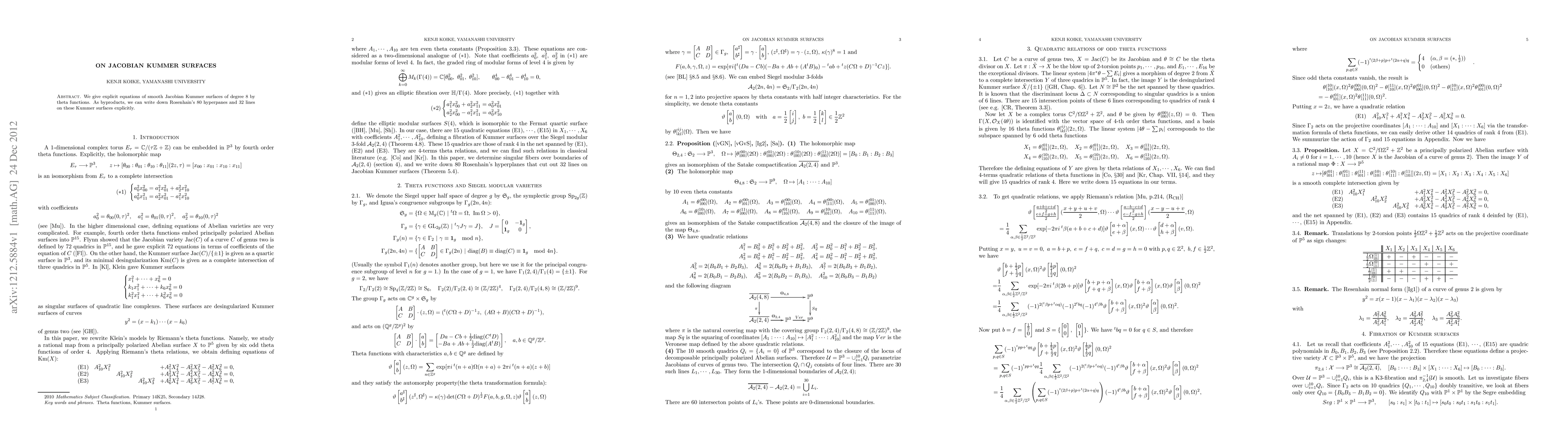 This paper provides explicit equations for smooth Jacobian Kummer surfaces of degree 8 using theta functions, and as a result, it also explicitly describes Rosenhain's 80 hyperpanes and 32 lines on these surfaces.