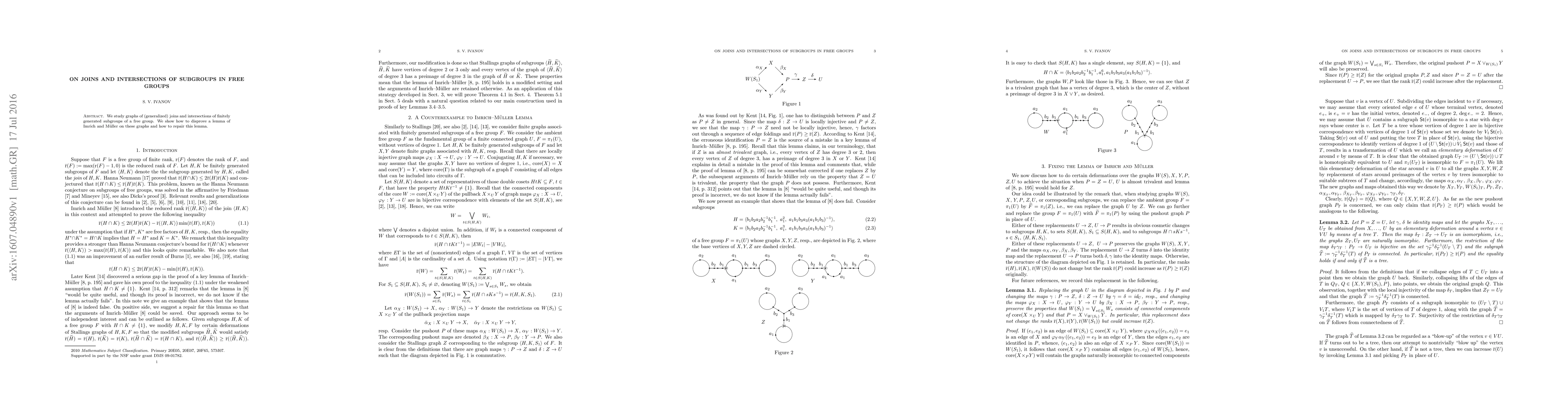 This paper investigates the structure of graphs representing joins and intersections of finitely generated subgroups within free groups. It disproves a previous lemma by Imrich and Müller regarding these graphs and proposes a corrected version.