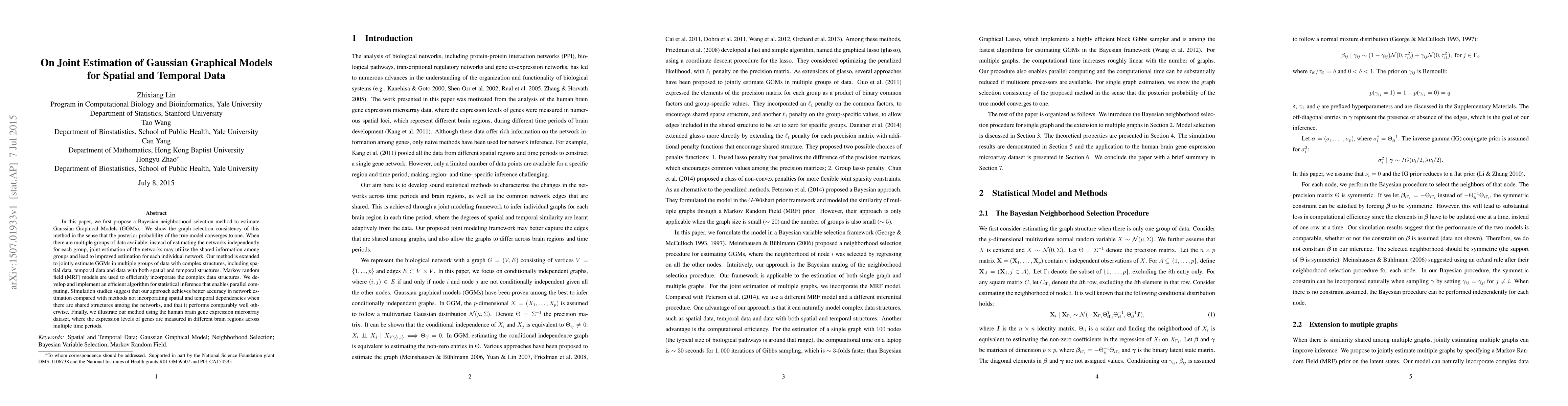 This paper proposes a Bayesian neighborhood selection method to jointly estimate Gaussian Graphical Models for spatial and temporal data, achieving improved accuracy in network estimation when shared structures among networks are considered.