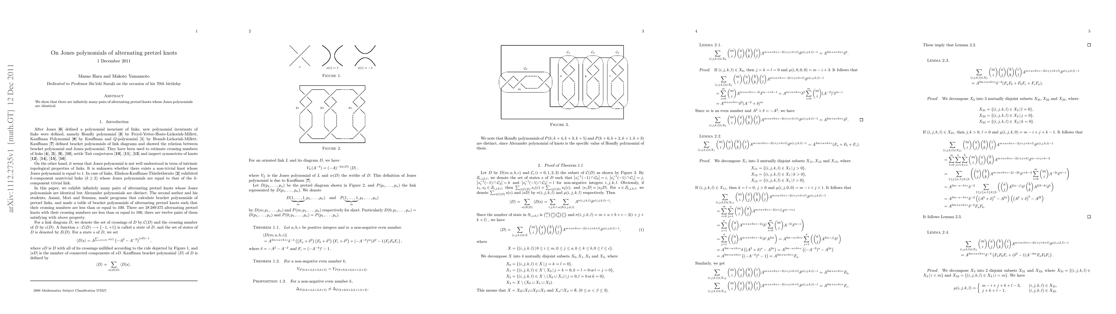 Summary: The paper demonstrates the existence of infinitely many pairs of alternating pretzel knots sharing identical Jones polynomials. This finding reveals surprising complexity in the classification of such knots.