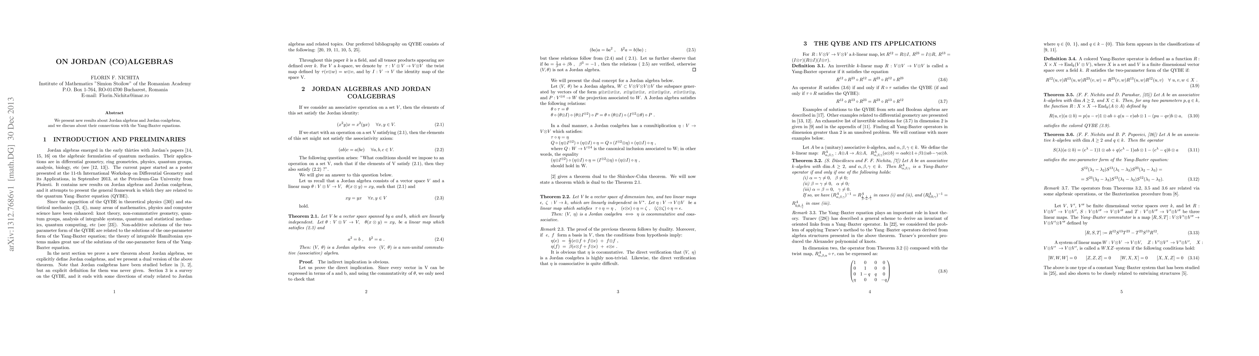 We present new results about Jordan algebras and Jordan coalgebras, and we discuss about their connections with the Yang-Baxter equations.