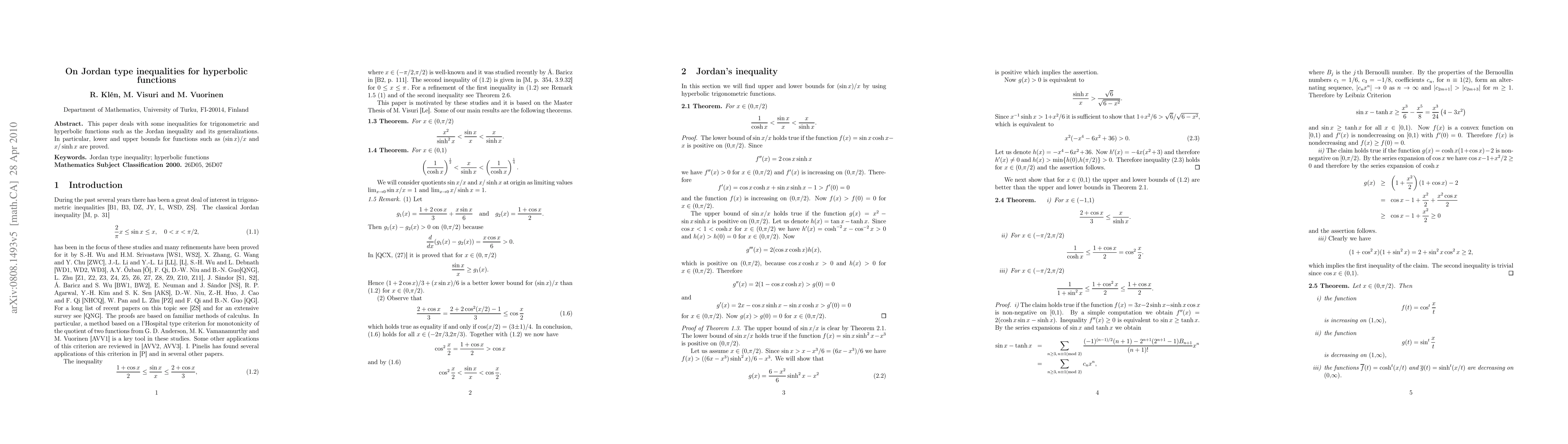 This paper deals with some inequalities for trigonometric and hyperbolic functions such as the Jordan inequality and its generalizations. In particular, lower and upper bounds for functions such as (sin x)/x and x/(sinh x) are proved.