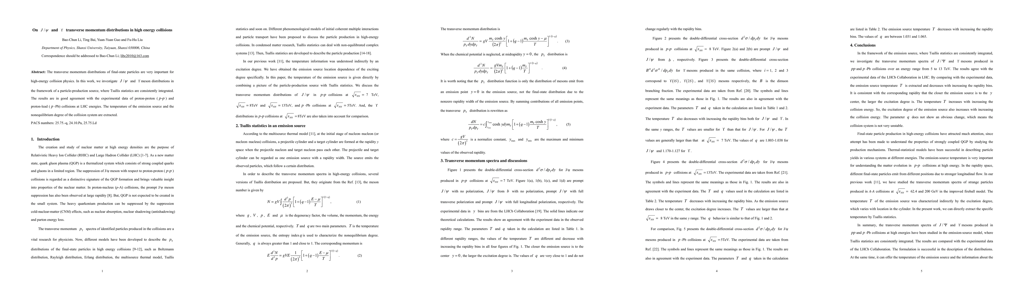 The transverse momentum distributions of final-state particles are very important for high-energy collision physics. In this work, we investigate and meson distributions in the framework of a particle-production source, where Tsallis statistics are consistently integrated. The results are in good agreement with the experimental data of proton-proton ( ) and proton-lead ( -Pb) collisions at LHC energies. The temperature of the emission source and the nonequilibrium degree of the collision system are extracted.