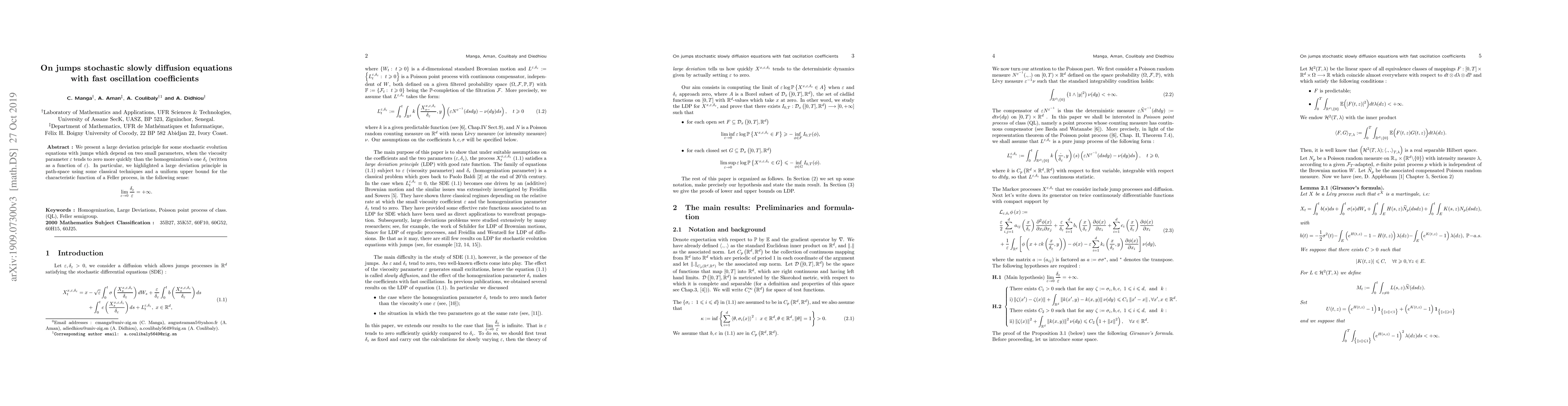 We present a large deviation principle for some stochastic evolution equations with jumps which depend on two small parameters, when the viscosity parameter {\epsilon} tends to zero more quickly than the homogenization's one {\delta}{\epsilon} (written as a function of {\epsilon}). In particular, we highlighted a large deviation principle in path-space using some classical techniques and a uniform upper bound for the characteristic function of a Feller process.
